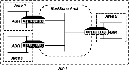 If a network is large, the size of the database, time required for route computation, and related network traffic become excessive. An administrator can partition an AS into areas to provide hierarchical routing connected by a backbone.