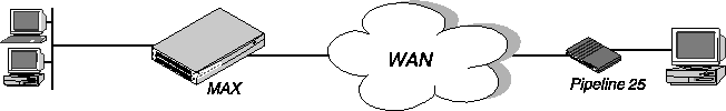 The MAX supports Combinet bridging to link two LANs as though they were one segment. Figure 3-4 shows a Combinet connection between two networks.