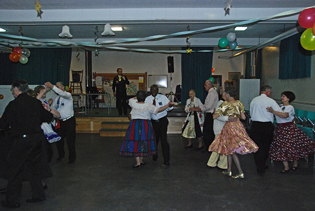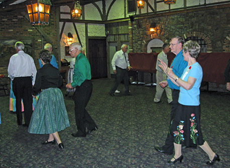 Moving towards reverse line of dance in the Round Dance Hall