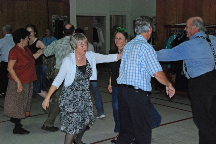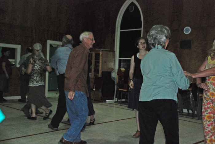 Metro dancers visited the Community Living Group of the Anglican Church in Upper Tantallon on Saturday, May 5, 2012. After a short demonstration assisted by caller Dottie Welch, the dancers were joined by members of the audience who wanted to try square dancing themselves. Bob Ruohoniemi kindly supplied the following pictures.