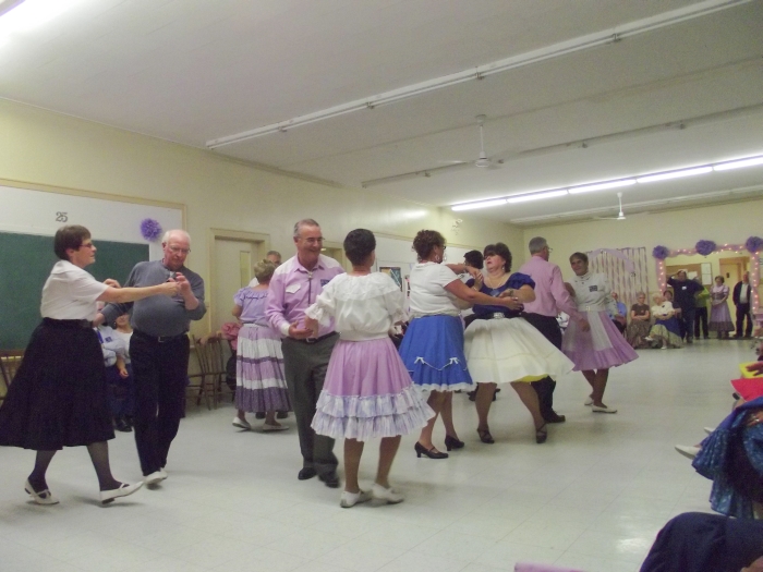 The West Kings Twirlers celebrated their 25th Anniversary on October 19 with a special dance held at their home location in the Melvern Square Community Centre. The festivities began at 6:30 pm, with a potluck supper followed by dancing. About one hundred persons enjoyed the free admission dance made possible by the leaders’ generous donation of their time. Callers Nelson Labor and Laurie Illsley then emceed an unforgettable evening.