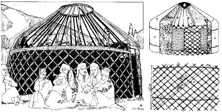 It is suggested that the latticed kibitka was adopted by the Turks of