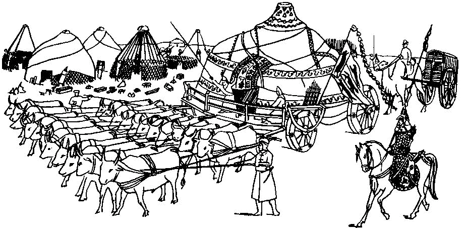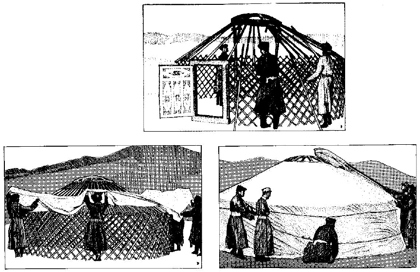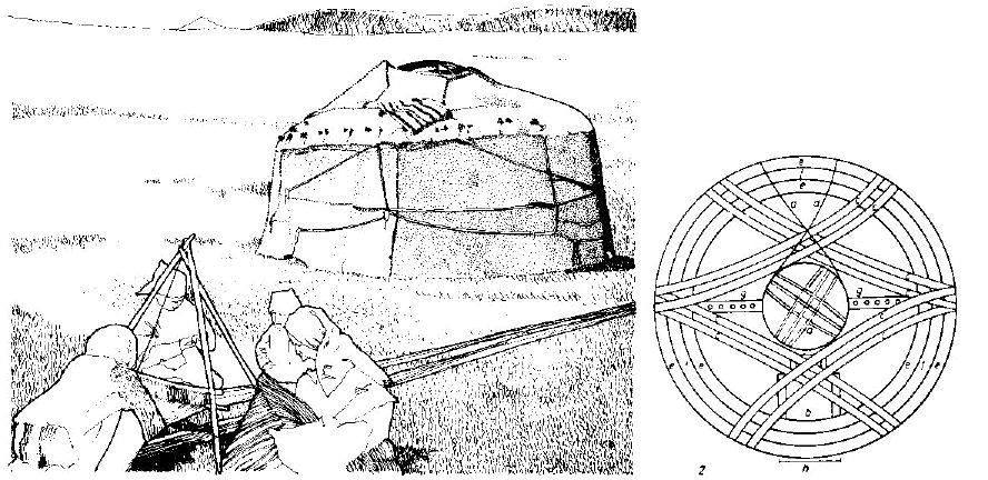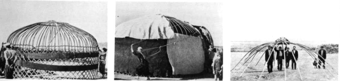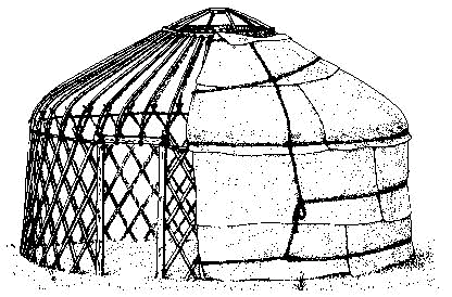 dome-shaped roof of the Turkic type but lack the lattice wall frame. These
