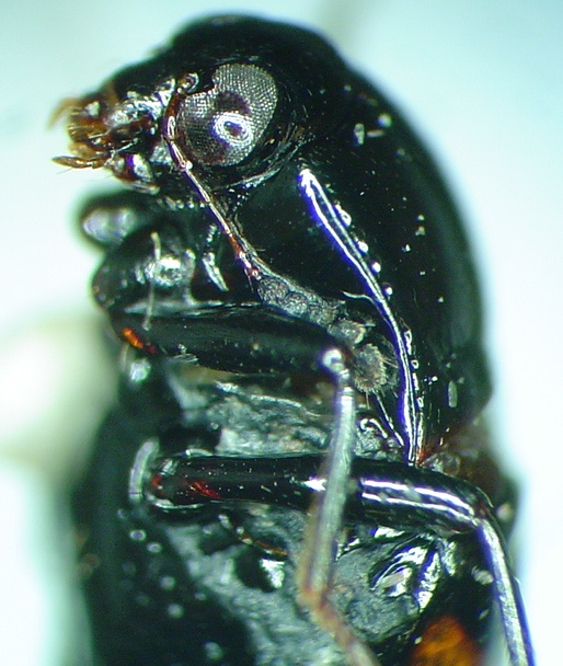 The colour differences between the two species are evident in the following photographs. Note also the very short dimensions of antennomere 3 and the fact that the scutellum is visible, both of which distinguish this genus from Baeocera.
