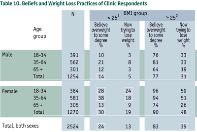 Beliefs and Weight Loss Practices of Clinic Respondents