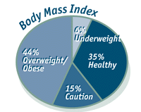 - 44% were overweight to obese, and more men than women were in